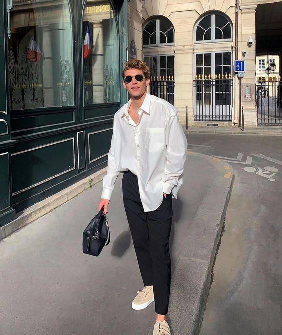 相反,当宽松的翻领衬衫遇到宽裤时,常规裤子的线条没有任何障碍,裤子的流畅形状与小皮鞋相结合。当用作夹克和衬衫时,可以快速提升休闲气质,使上衣和下装看起来好看、清新、年轻。 。
