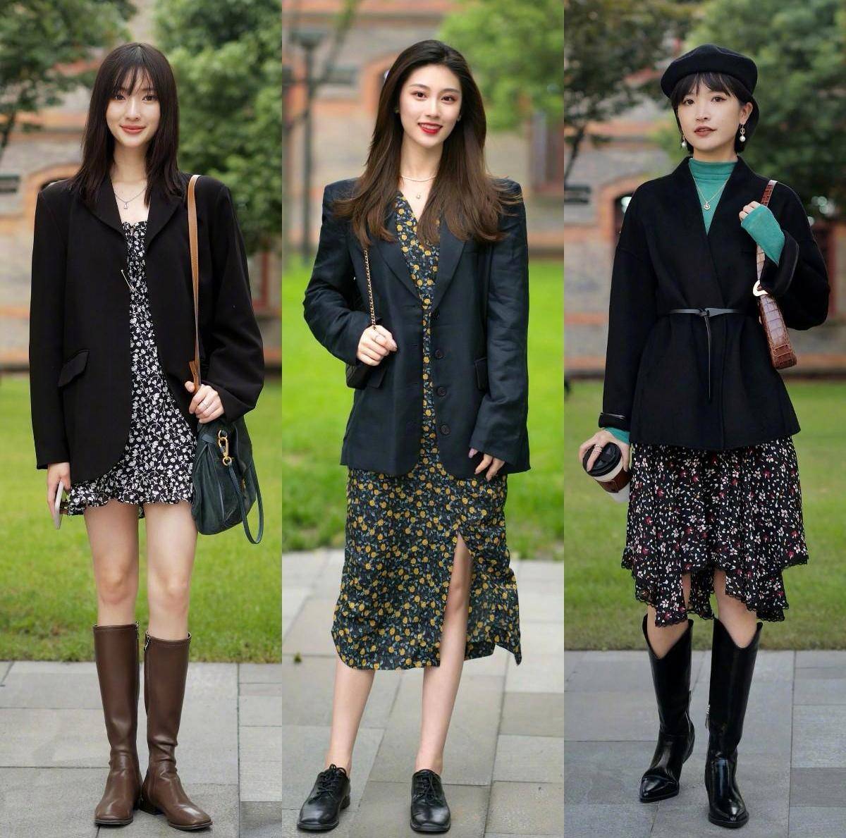 除了在职场场合穿着之外,黑西服还可以搭配裙装,展现出优雅的名媛气质,适用于约会、宴会等正式场合。